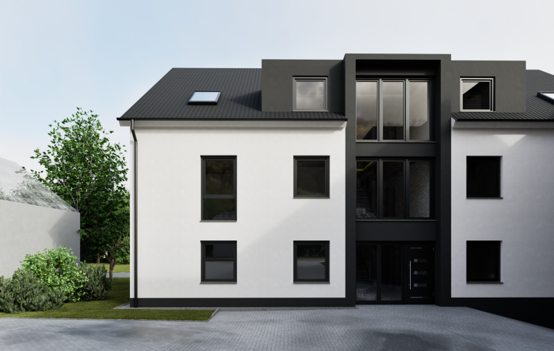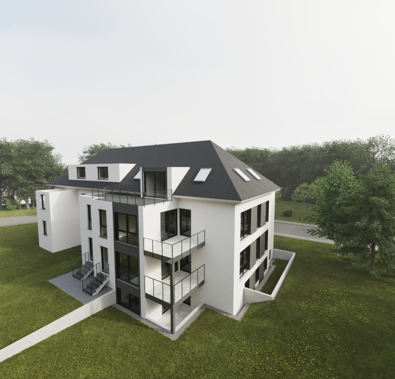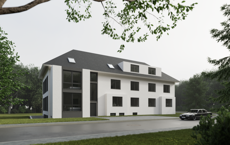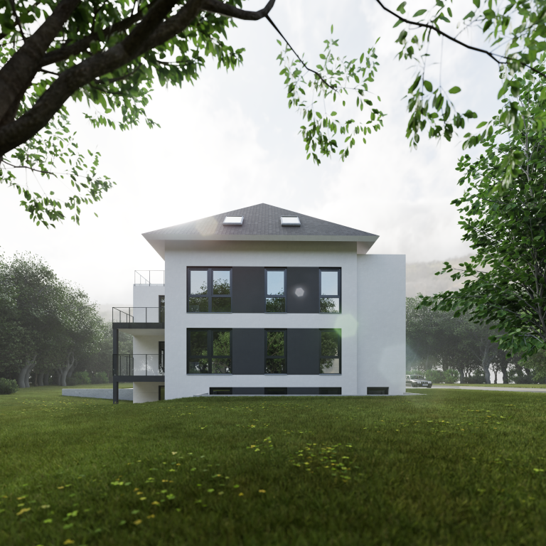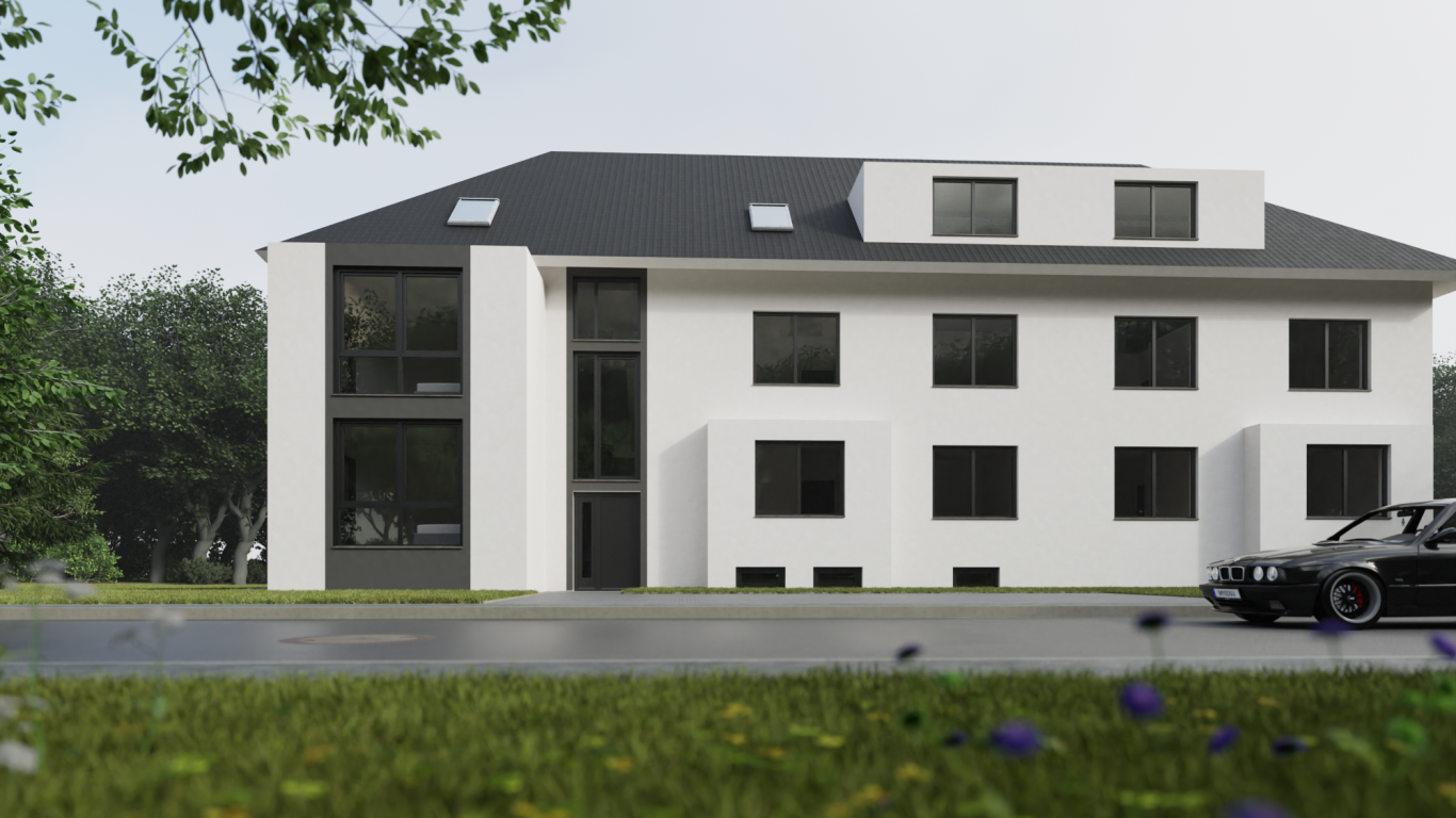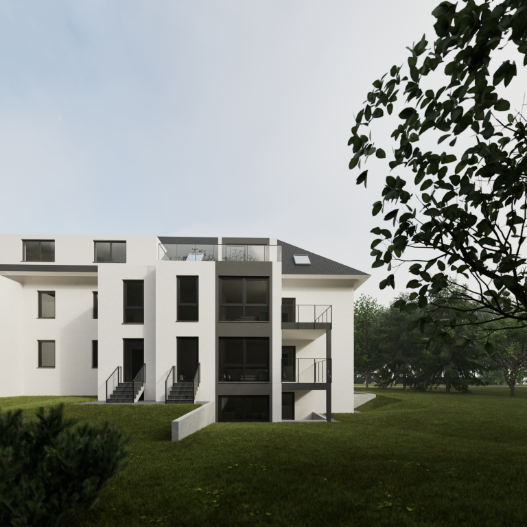Sanierung und Erweiterung einer Doppelhaushälfte zu einem Mehrfamilienhaus.